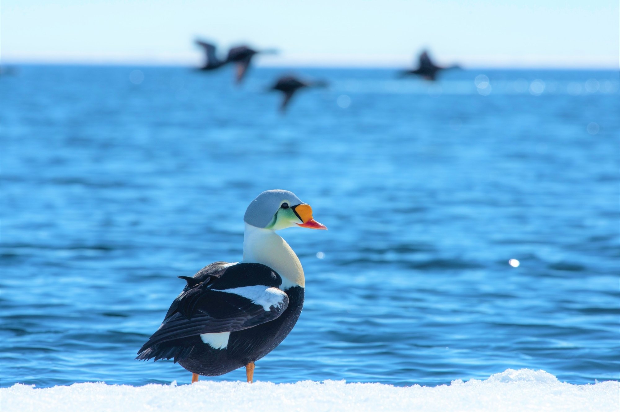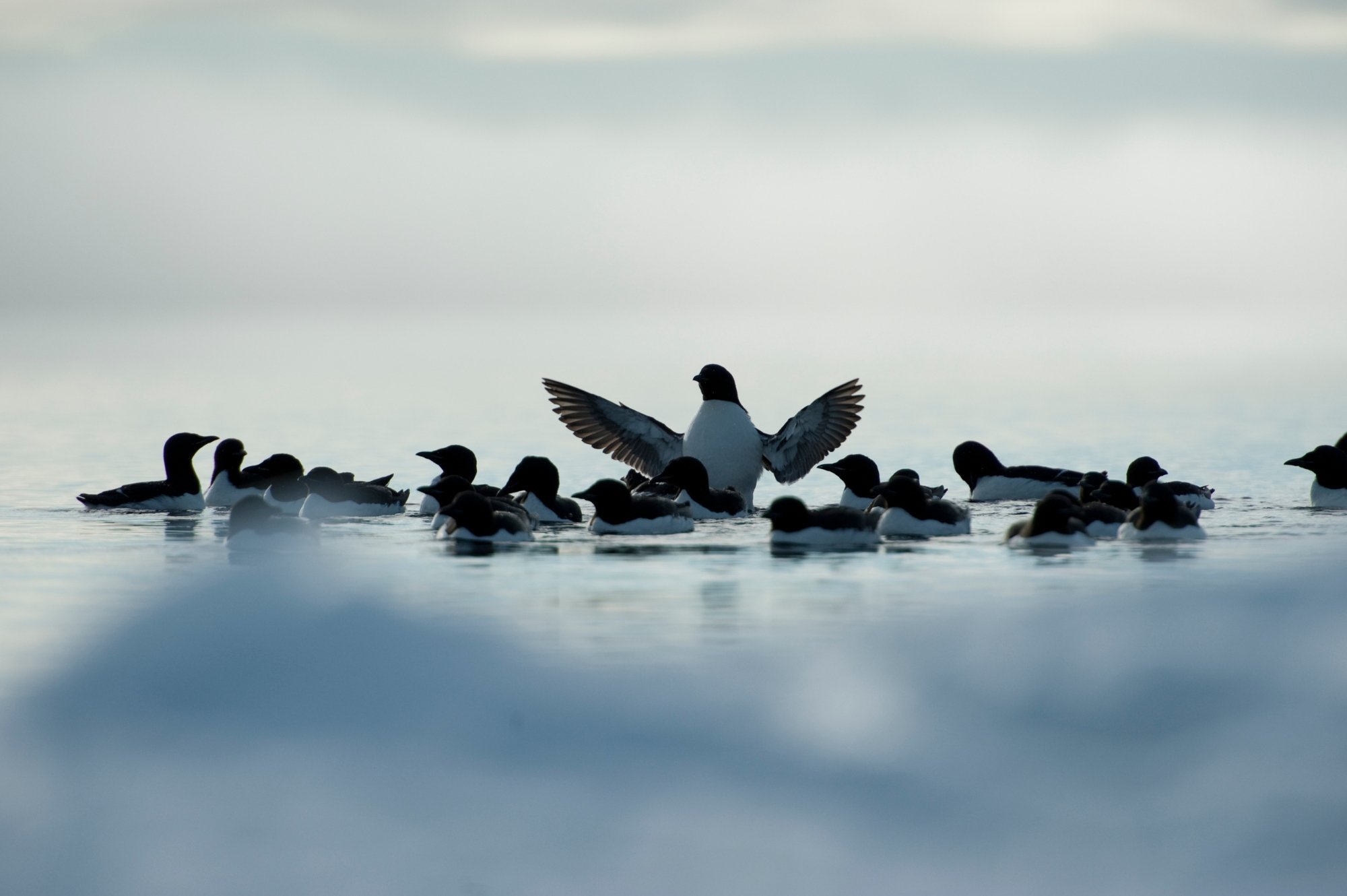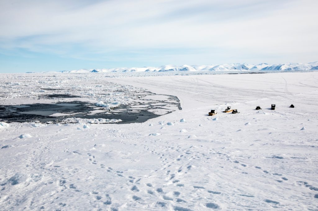 The floe edge is the place where the frozen sea ice meets the Arctic Ocean, a dynamic boundary often called the “line of life.” During spring, as the sea ice starts opening up, Arctic whales migrate past, looking for leads to enter the channel.