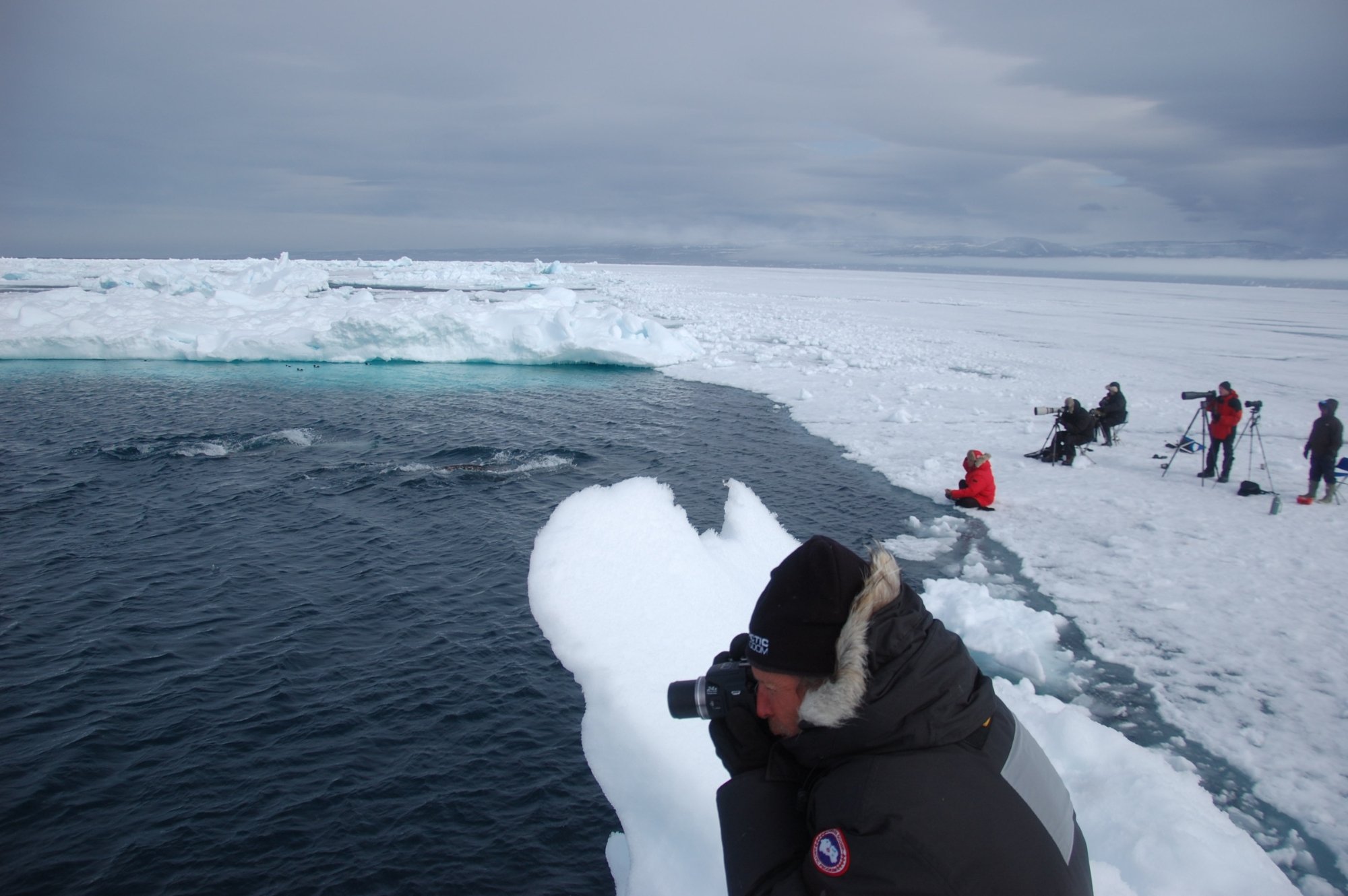 You might spend up to 10 hours a day at the floe edge, offering you as much time as possible to see wildlife. Lunch is served on location and you will have a pop-up tent for warming up and seats as you wait for animals to appear. With some luck, you may get to observe the iconic tusked narwhal as they swim past the floe edge. Other animals you might encounter are polar bears, bearded seals, ringed seals, walrus, bowhead whales, beluga’s and an array of migratory birds. The ice floe edge offers unmatched photography opportunities for capturing these polar animals.