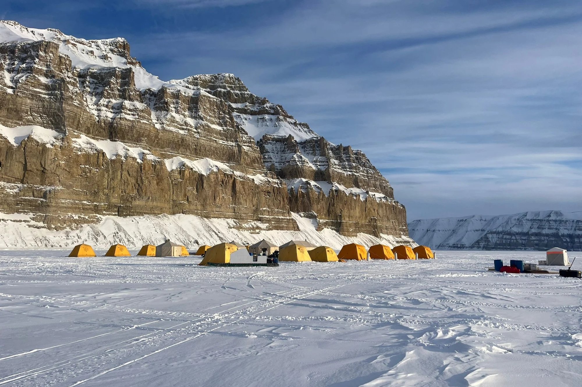 This expedition takes place at the northern reaches of Baffin Island. Here lies Arctic Bay, one of the most picturesque communities in the Canadian Arctic. From here, you will embark on your journey across the ice toward the floe edge in Admiralty Inlet. This remote wilderness offers breathtaking scenery with sheer cliffs rising above the frozen Arctic Ocean.