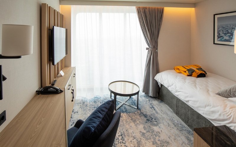 If you’re looking for the most affordable way of solo expedition travel, a shared cabin is usually the best option. You’ll be assigned a room mate (same gender) and beds will be set up as twins, usually with a curtain in between.