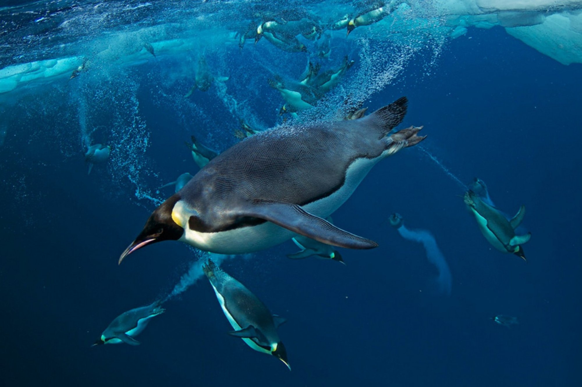 Usually, under water photography of Penguins, Seals, and Whales will be done while snorkeling instead of diving. When Göran worked with Paul Nicklen during his National Geographic Leopard Seal assignment, they almost always snorkeled. A snorkel gives you the quick and silent advantage, which is key to a good encounter. However, this type of photographic activity, usually leads to your camera rising out of and falling into the water, especially if you are attempting half and half shots. The problem with this is small air bubbles often collect on the front of the lens, even when wiped with rain-X. Get in the habit of wiping your lens as often as you can. There is nothing so disturbing as having a good image, obscured by bubbles.