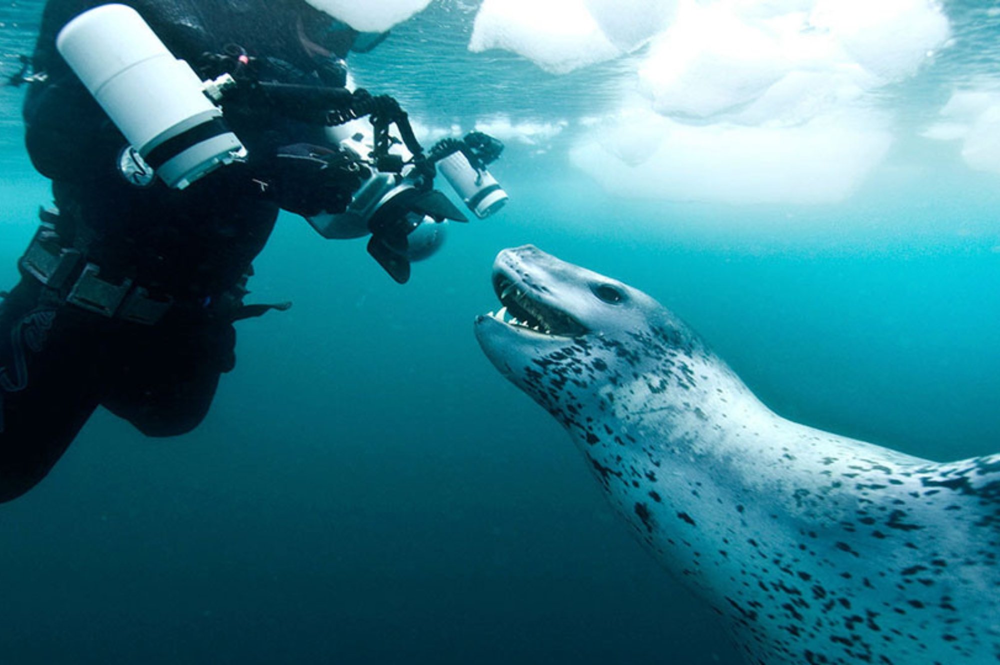 The first thing that will begin to get uncomfortable while under water, no matter what kind of gloves you wear, will be your hands. Although you may not be able to simulate the cold, get used to switching the small knobs and buttons on the underwater housing with large cumbersome gloves. You should be able to find your shutter release without having to look for it, you should know exactly where to go in the menu to change the speed of your camera, and all of this should be done relatively quickly (as quickly as you can move with 35 kilos of gear on your back). In all aspects, the polar regions are unpredictable, so you may have your camera set for shooting benthic animals, when a Leopard Seal appears. You’ll have to move fast in order to capture the image.