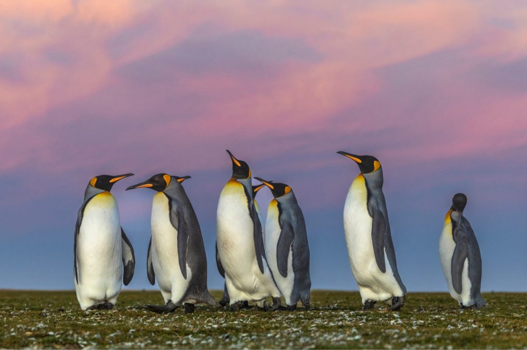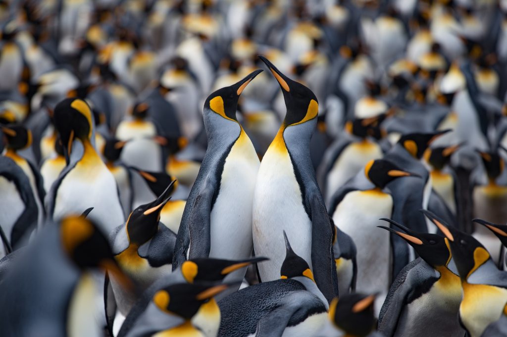 Koningspinguïn – Komt in grote aantallen voor op de sub-Antarctische eilanden zoals South Georgia en de Falklandeilanden.