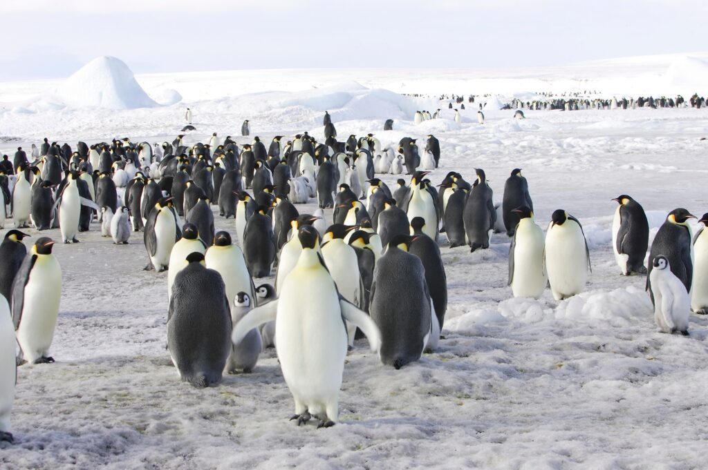Keizerspinguïn – De grootste pinguïnsoort, alleen te vinden op het zee-ijs. Ze worden niet vaak gespot.
