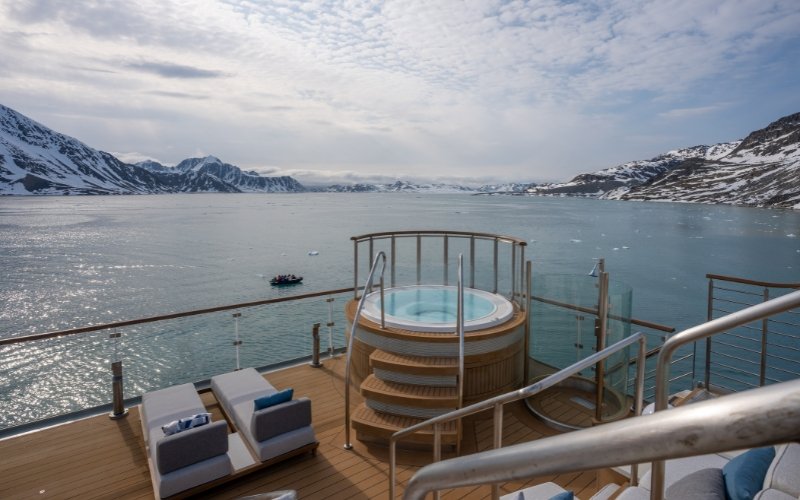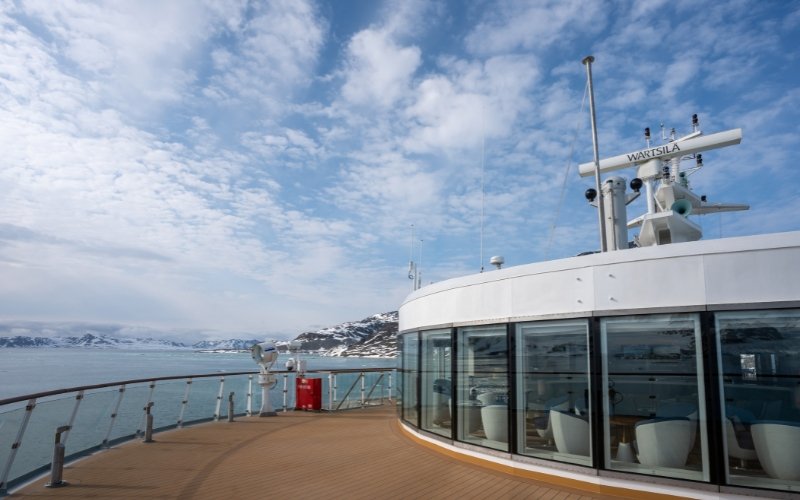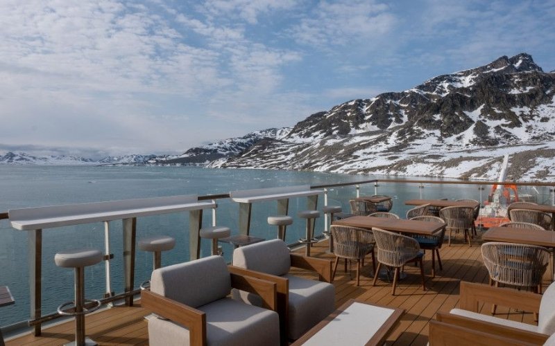 De buitendekken bieden geweldige mogelijkheden om wilde dieren te spotten, met glazen balustrades die een bijna volledig vrij uitzicht bieden. Als er iets bijzonders te zien is, kunnen de hydraulische platforms op dek 5 worden geopend. Deze maken het mogelijk om op waterniveau te kijken, waardoor je zo dicht mogelijk bij de natuur komt terwijl je op het schip bent.