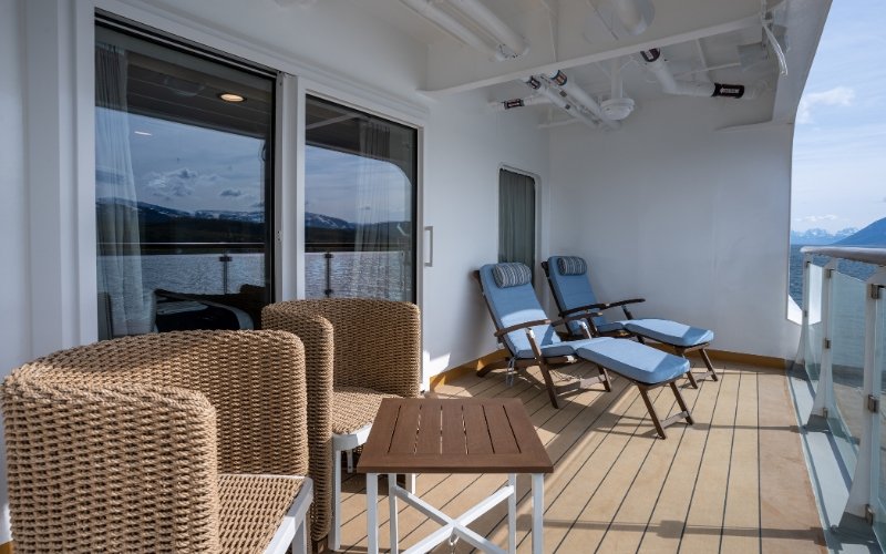 De ruime balkonsuites bevinden zich op de dekken 4 en 6. Ze hebben een tweepersoonsbed of twee aparte bedden, een zithoek, een badkamer en een groot privébalkon. De balkonsuites zijn geschikt voor 2 personen.