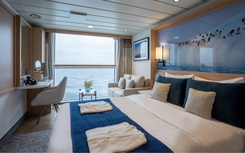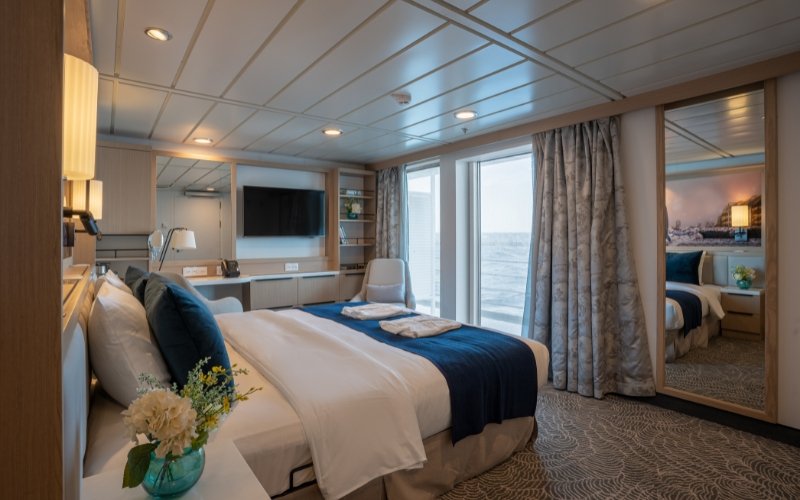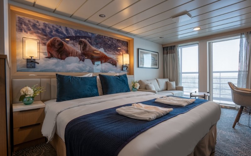 De Premium Suite, genaamd Freydis Suite, aan boord van Ocean Albatros, bevindt zich op dek 4.
