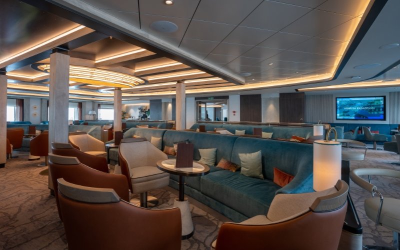 Er zijn twee Lounge & Bar ruimtes, de Roald Amundsen Lounge & Bar op dek 5 en de Knud Rasmussen Observation L...