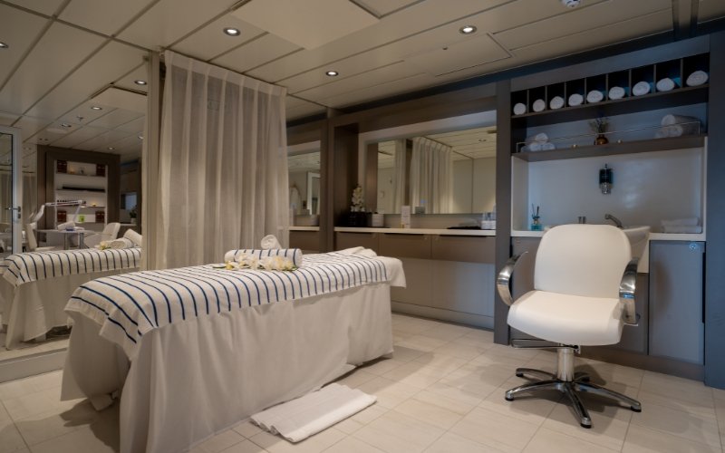 Op dek 7 kun je gebruik maken van de fitnessruimte of, als je liever zweet, van de sauna, terwijl je geniet van het landschap buiten door de ramen van vloer tot plafond. Je kunt ook een reservering maken voor de Polar Spa, en jezelf bijvoorbeeld verwennen met een massage of gezichtsbehandeling.