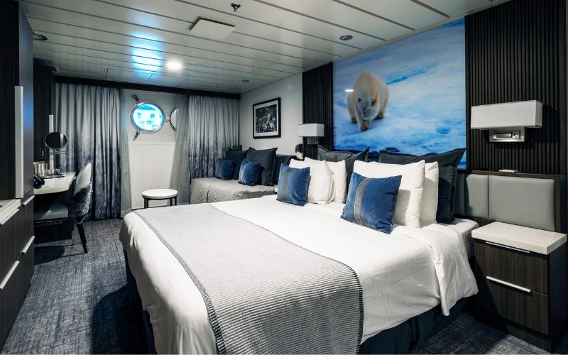 De Superior balkonhutten aan boord van de Sylvia Earle zijn ideaal voor poolfanaten die extra ruimte zoeken.