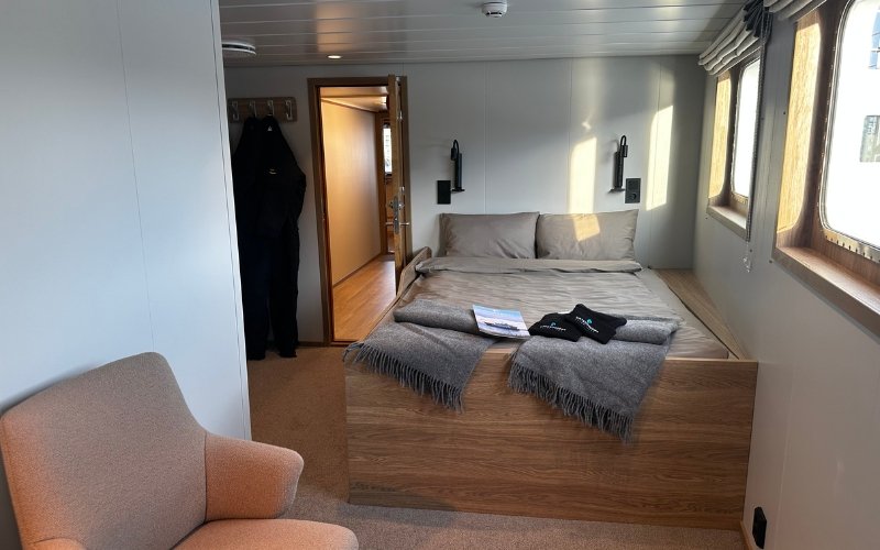 De Superior Suite bevindt zich op het bovendek, waar je ook de sauna en jacuzzi vindt. Het heeft een tweepersoonsbed,...