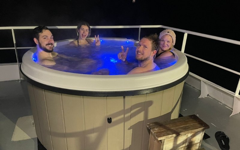 De jacuzzi op het bovendek is de beste plek voor een praatje met je mede-expeditieleden terwijl je geniet van het landschap. En als je in de winter reist, kun je misschien wel het Noorderlicht zien!