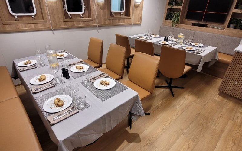 Het gezellige restaurant van de Vikingfjord is te vinden op dek 1. Onze chef-kok aan boord zal je drie keer per dag verrassen met heerlijke maaltijden.