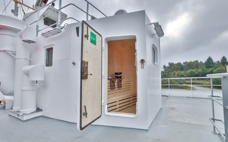Na een dag in de kou kun je je opwarmen als een echte Scandinaviër! Geniet van een ontspannend moment in de sauna op het bovendek terwijl je nadenkt over de spannende ervaringen van de dag.