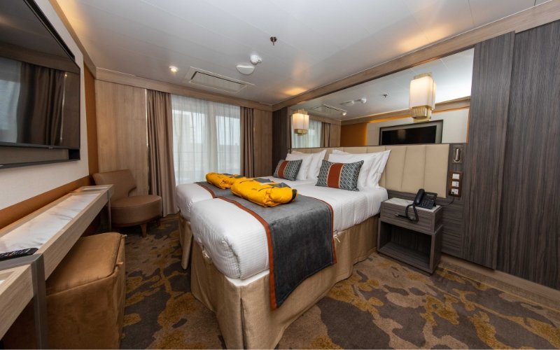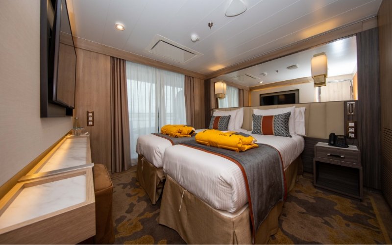 Gelegen op dek 5 met een oppervlakte van ca. 31 m². De Deluxe Suites hebben een tweepersoonsbed of twee eenpersoonsb...