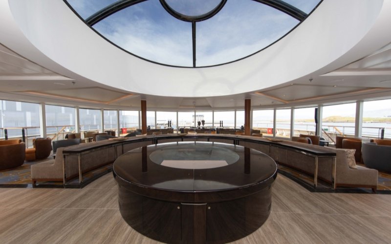Op dek 7 bevinden zich ook het grote, verwarmde buitenzwembad en twee bubbelbaden. De openlucht ‘lounge’ op dek 8 biedt gasten een adembenemend panoramisch uitzicht vanuit verwarmde zitplaatsen, zodat je warm kunt genieten van het buitenleven. Daarnaast is er op dek 8 het openlucht loopdek, waar gasten kunnen joggen of wandelen terwijl het schip langs gletsjers, ijsbergen en de uitgestrekte oceaan vaart.