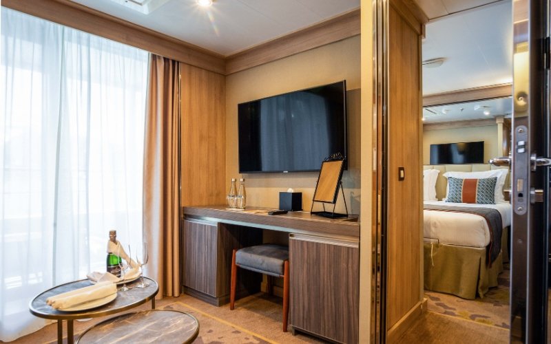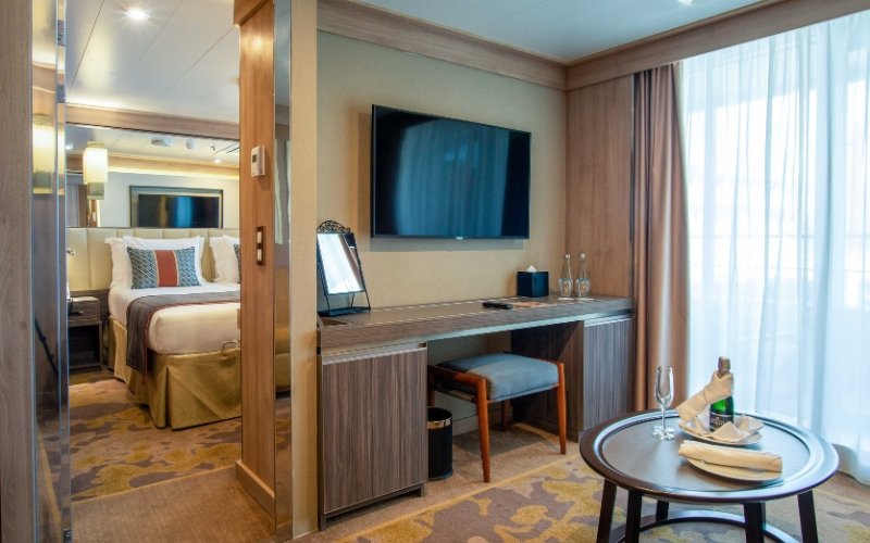 De Driepersoons Suites bevinden zich op Dek 6. Deze kamers zijn ongeveer 22,5 m² groot, hebben een slaapkamer met ee...