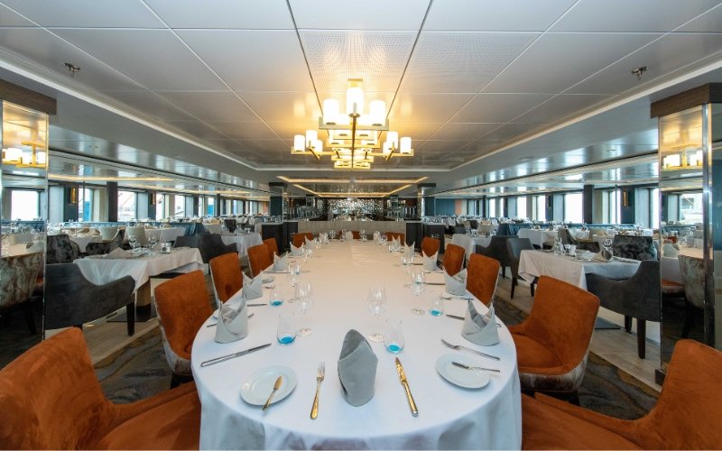 World Explorer beschikt over één groot restaurant. Hier geniet je drie keer per dag van door de chef bereide maaltijden. Ramen aan weerszijden van het restaurant zorgen ervoor dat je het panoramische uitzicht niet hoeft te missen, zelfs als je aan tafel zit.