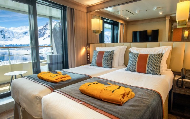 Persoonlijke ruimte is van het grootste belang. Elke suite heeft een privébalkon of een Frans balkon, met direct uitzicht op zee. De World Explorer heeft tal van openbare ruimtes voor ontspanning na een dag vol outdoor activiteiten. Zoals de Observation Lounge met een glazen koepel voor panoramische uitzichten, de Explorer Lounge voor een gezellig samenzijn onder het genot van een drankje en de bibliotheek voor momenten van ontspanning en het lezen van een goed boek. Boeiende presentaties worden gehouden in een aparte presentatieruimte.