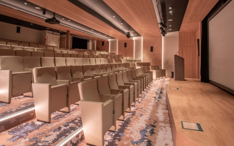De presentatieruimte op dek 4, ontworpen in theaterstijl, is ruim genoeg voor alle passagiers aan boord. In deze centraal gelegen ruimte worden boeiende presentaties gegeven en video’s getoond.