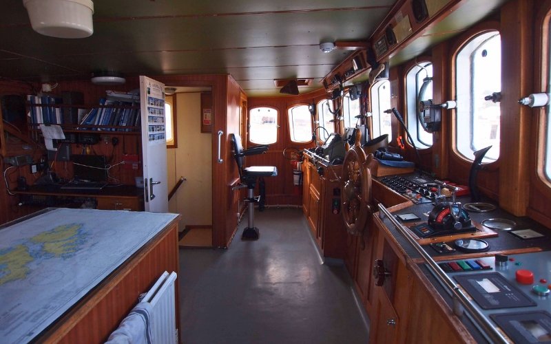 De brug is een perfecte plek om te zoeken naar wildlife, te genieten van de omgeving als het buiten te koud is, of om een praatje te maken met de kapitein. Aan boord van een klein schip als de Hans Hansson is de deur naar de brug bijna altijd open.