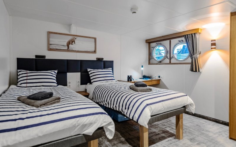 Nanook was originally built in 1968 by Denmark for patrol and assistance missions on the North Sea. Its’ small size and 1B ice-class make the vessel fast and sturdy, allowing for easy navigation through ice-packed areas. The ideal characteristics for a small-ship cruising experience in the Arctic. Nanook is equipped with fuel-efficient engines and meets the highest environmental standards. The yacht features eight thoughtfully designed cabins, accommodating up to 12 guests on bespoke Arctic itineraries in Greenland, Svalbard and Northern Norway.