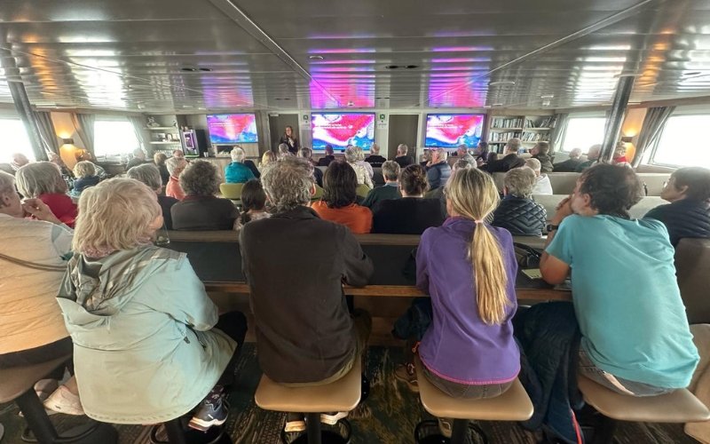 Ortelius has a seperate lecture room on deck 3 where the expedition team might give presentations or workships about specific subjects related to the destination, such as wildlife, geology and history.
