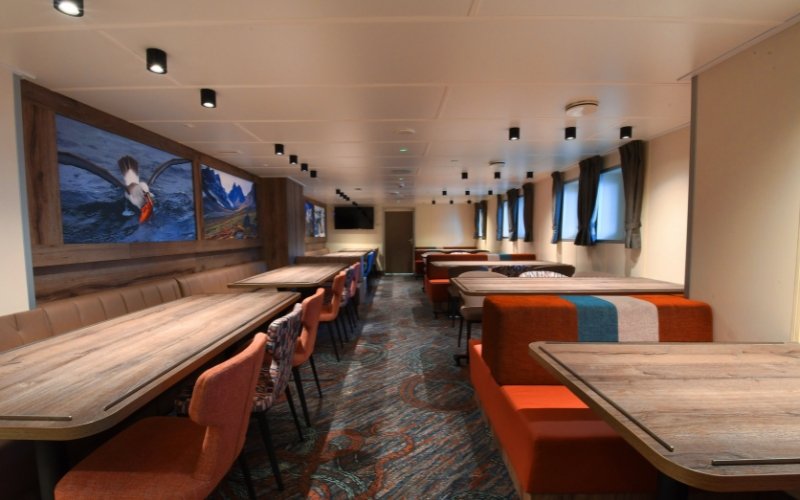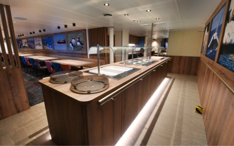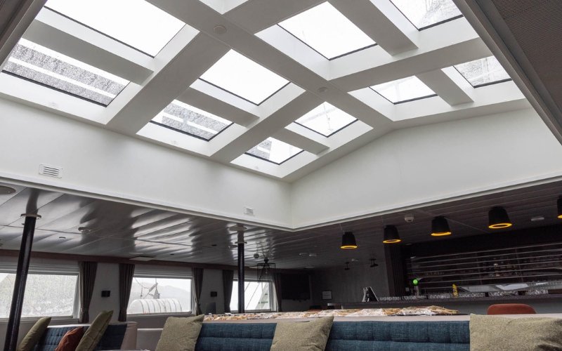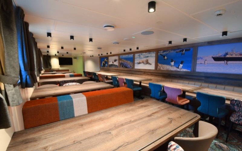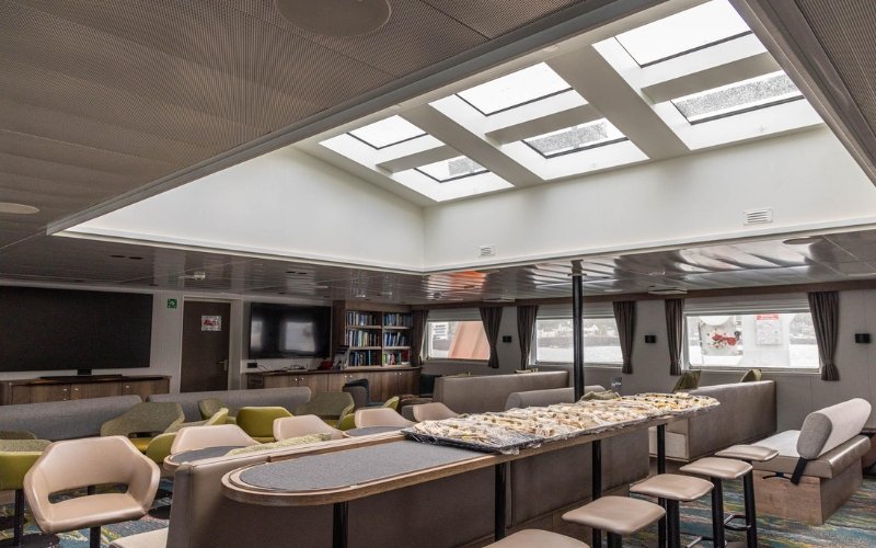 Tucked away in a corner, you’ll find the library with a wide range of books on polar wildlife and history. A brand new skylight was installed in 2025 to further enhance guest experience while onboard on their expedition.