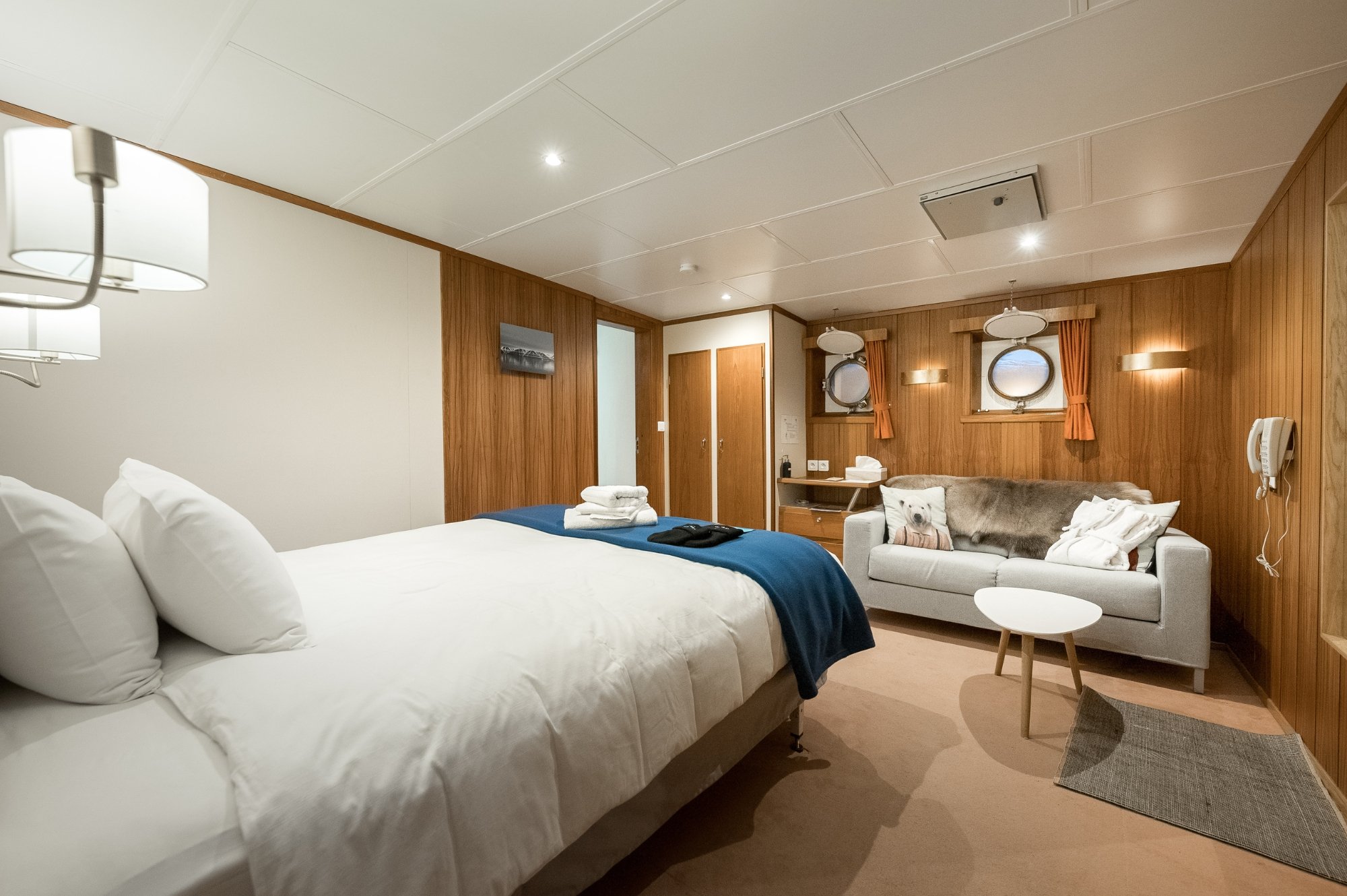 In an ongoing effort to limit the environmental impact, state of the art technologies will be retrofitted to replace the propulsion and power systems to reduce the ship’s fuel consumption, and to improve safety of navigation. Additional noise reductions will dramatically improve the comfort of guests on board. It will allow you to fully immerse yourself into the remote Arctic and take in all the views and sounds without the disturbance of engines and generators.