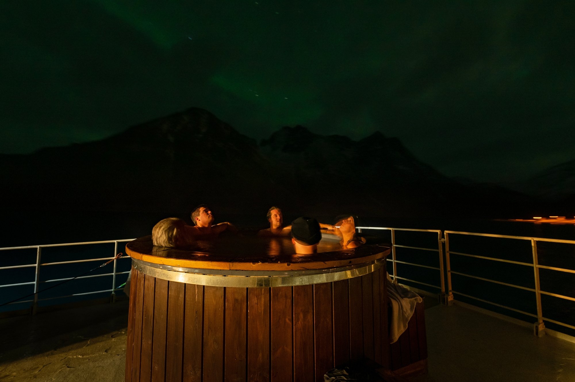 One of our favorite features on board Polarfront is the hot tub out on deck. It is the perfect place to warm up after a day of exploring the Arctic. If you’re lucky, you might even spot the northern lights!